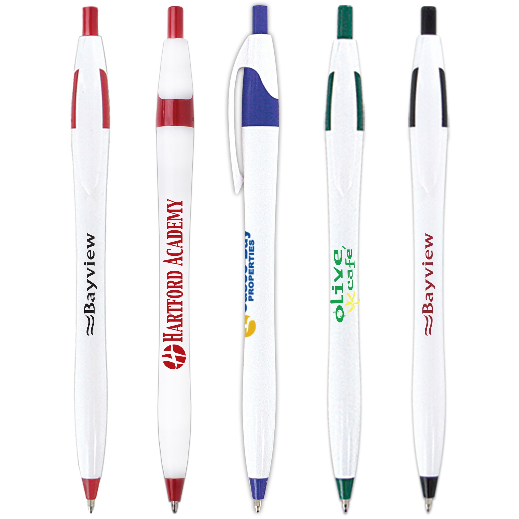 - These pens are customized with your company or organization’s message, logo, or personalized imprint, which is screen printed on the barrel in your choice of 1 of our 15 vibrant imprint colors!
