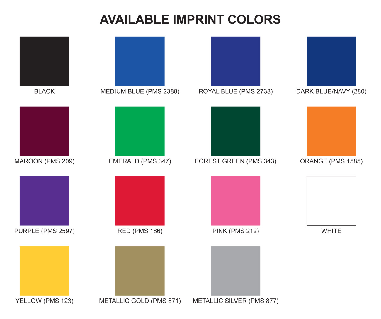 We accept Adobe Illustrator vector files including .eps, ai, and pdf, as well as high resolution 300dpi raster files including psd, jpg, tiff, and png. Please convert all fonts to outlines before submitting artwork. If you require small changes to your artwork, we are usually able to make those adjustments at no charge. Our goal is your total satisfaction and we will work with you closely to make sure you are satisfied with the finished product. We will always contact you if our Art Department has any questions or concerns with the submitted artwork. If you have any questions about the feasibility of your desired imprint, please feel free to email us your artwork to review and evaluate before ordering.